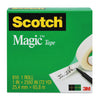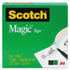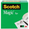 Magic Tape Refill, 1" Core, 0.75" x 36 yds, Clear, 6/Pack. Scotch® Magic™ Tape works as hard as you do to fix all the little imperfections at home, school and the office. The Scotch® Brand's famous matte-finish invisible tape uses unique 3M adhesive technology to bond tightly with paper and disappear without a trace. Write on it with pencil, pen or marker—every word is loud and clear. Scotch® Magic™ Tape: Always ready for big ideas and everyday mends. Core Size: 1"; Dispenser Included: No; Backing Material: Plastic; Width: 0.75".