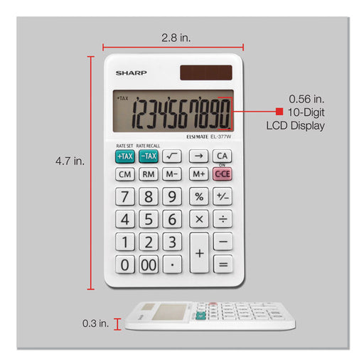 Ten-digit professional large pocket calculator. Functions include: automatic tax keys, percent key, square root key, backspace key and four-key ind...
