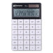 15973 Large Button Calculator, 12-Digit LCD. A stylish home or office essential that is ideal for everyday equations and calculations. Large 12-digit display and keys for easy viewing and clicking. Dual solar/battery power provides reliable functionality in all lighting conditions. Completely flat design for easy storage. Features square root, +/- Switch, and Percent keys help to easily find the answer to more complex calculations. Power Source(s): Battery; Solar; Display Notation: Numeric; Number of Display Digits: 12; Display Characters x Display Lines: 12 x 1.