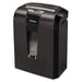 Powershred 63Cb Cross-Cut Shredder, 10 Manual Sheet Capacity. Provides high performance shredding with active shredder safety and jam prevention features. SafeSense® Technology stops shredding when hands touch the paper opening. Jam Blocker™ blocks jams before they start. Energy Savings System provides optimal energy efficiency 100% of the time—in use and out of use. Shreds 10 sheets per pass into 5/32” x 2” cross-cut particles (Security Level P-3) and also safely shreds staples, paper clips and plastic credit cards. It has a 5-gallon pull-out bin. Designed for individual use, the 63Cb shreds for up to 8 minutes before a 20 minute cool down period is needed. Recommended Shredder Users: 1; Run Time: 8 min on/20 min off; Motor HP: 0.4 hp; Daily Usage Level: Light.