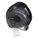 Single JBT Tissue Dispenser, Oceans, 10 1/4 x 5 5/8 x 12, Black Pearl. Single JBT dispensers provide efficient and reliable tissue dispensing. Built to meet San Jamar’s high quality standards, durable single JBT dispensers work with any universal jumbo bath tissue, 9 or 12 inch. Single 9" JBT Oceans® Style—Oceans® wave design imprinted on the cover. For Roll Size: 9"; Roll Type: Jumbo; Capacity (text): (1) 9" roll with 3 1/4" core diameter; Color(s): Transparent Black Pearl.