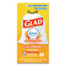 OdorShield Tall Kitchen Drawstring Bags, 13 gal, 0.95 mil, 24" x 27.38", White, 240/Carton. Glad OdorShield Trash Bags provide strength plus odor control, to keep your home smelling fresh and clean. These kitchen garbage bags are made with OdorShield technology and Febreze freshness for guaranteed 5 day odor control, based on lab test compared to unscented bags. The unique diamond pattern in these drawstring bags, stretches around objects to prevent rips and the reinforcing bands help add strength while reducing plastic waste, when compared to a leading branded bag. These trash can liners are reinforced at the top, middle and bottom and are made with thicker plastic for leak protection. With the 3 ply drawstring, which grips the can, the bag stays in place until you are ready to take it out. The drawstring bag makes closing and carrying easy. These 13 gallon size, odor eliminating, trash bags, fit tall kitchen trash cans, and are perfect for use in busy kitchens, offices or seasonal cleaning like Spring Cleaning and Back to School. Value Pack—Stock up and save! Application: Can Liner; Capacity Range (Volume) [Max]: 13 gal; Thickness: 0.95 mil; Grade: Extra Heavy-Duty.