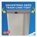 Tall Kitchen Drawstring Trash Bags, 13 gal, 0.72 mil, 24" x 27.38", Gray, 100/Box. Drawstring bags are made strong and durable to help prevent trash disaster in the home and workplace. These kitchen garbage bags are have reinforcing strength bands that make the trash bags stronger while using less plastic. They are reinforced at the top, middle and bottom. These drawstring bags are made with a unique diamond pattern that stretches around objects to prevent rips, reinforcing bands to add strength plus a thicker plastic for leak protection. The strong three-layer drawstring closure makes trash removal easy to lift, carry and toss away. Simply pull up on the drawstring to close the trash bag and then knot the drawstring for extra security. The size is perfect for use in kitchens, break rooms, daycare centers. They are also great for seasonal cleaning needs. Application: Can Liner; Capacity Range (Volume) [Max]: 13 gal; Thickness: 0.72 mil; Material(s): Plastic.