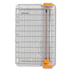 SureCut Paper Trimmer, 7 Sheets, ABS Base, 6 7/16" x 15". Compact and lightweight, ideal for trimming photos, coupons and office paper. SureCut™ cut-line indicator allows you to quickly and easily align paper. Titanium-coated blade for extra lasting sharpness. Precision-printed scale and grid to accurately align your project before cutting. Swing-out arm increases measurements to 14 1/4". Patented TripleTrack™ blades interlock with cutting rail for straighter cuts. Trimmer Board Type: Rotary; Sheet Capacity: 7; Cut Length: 12"; Blade Material: Titanium Carbide-Coated Stainless Steel.
