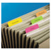 2" Angled Tabs, 1/5-Cut Tabs, Assorted Brights, 2" Wide, 24/Pack. Self-stick hanging file tabs are angled to see from above. Can be repositioned as needed. Easy to write on. White tab has accent color to aid color coding. White tab has accent color to aid color coding. Pop-up dispenser allows easy access. 2" Solid Color. File Insert/Tab Type: All-Purpose Tabs; Tab Cut: 1/5-Cut; Color(s): Assorted Brights; Color Family: Multicolor.