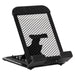 Adjustable Mobile Device Mesh Stand, Black. Support and store your e-reader, smartphone, or tablet with the versatile Rolodex Adjustable Mobile Device Mesh Stand. Designed for use with most mobile devices, the stand is compact and collapsible, works with devices in either landscape or portrait view, and features five adjustable viewing angles with easy access to charging ports and buttons. Stand Type: Mobile Device Stand; Width: 1 5/8"; Depth: 5 3/64"; Maximum Height: 5".