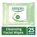 Eye And Skin Care, Facial Wipes, 25/Pack. Simple® facial skincare products are perfect even for sensitive skin. These products have no dyes, artificial perfumes or harsh irritants that can upset skin. Contains skin-loving ingredients and added vitamins for natural, healthy-looking skin. Simple® products are hypoallergenic, non-comedogenic and pH balanced. Facial Wipes. Towel/Wipe Type: Facial Wipe; Application: Facial Cleansing; Applicable Material: Skin; Number of Plies: 1.