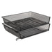 Mesh Stacking Side Load Tray, 1 Section, Letter Size Files, 14.25" x 10.13" x 2.75", Black. Store and organize A4 or letter-size papers and files with the sleek Rolodex Mesh Side-Load Stacking Letter Tray. With a durable steel mesh construction, the letter tray features a self-stacking design that safely accommodates up to three trays. Number of Compartments: 1; For File Size: Letter; Load Orientation: Side; Color(s): Black.