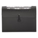 Step Index Organizer, 12 Sections, 1/6-Cut Tab, Letter Size, Black. Innovative tiered tabs let you see everything at a glance. Clear window makes viewing file contents easy. Durable, embossed poly material resists tears and moisture. Preprinted plus blank tab inserts for easy indexing and customization. Flap and elastic cord closure. PVC-free. Acid-free. Pocket/Wallet Type: Files/Papers; Size: Letter; Closure Type: Elastic Cord; Color(s): Black.