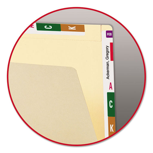Dual purpose folders have both top tab and extended 9 1/2" end tab for use on shelf or in drawer. Straight cut allows color-coding on either or bot...