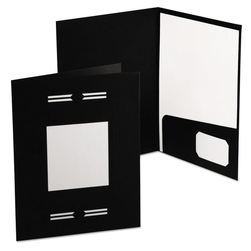 Embossed pattern cover stock has square-cut display window for a winning custom presentation. Includes cover sheet for laser or inkjet printing. Pr...