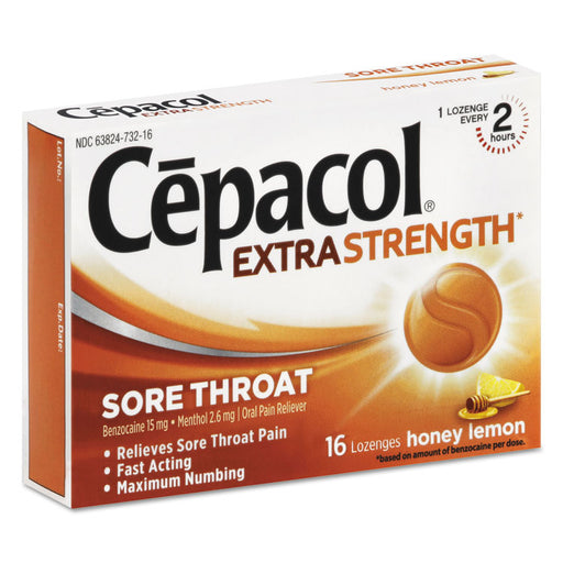 Extra Strength Sore Throat Lozenges, Honey Lemon, 16 Lozenges/Box, 24 Box/Carton