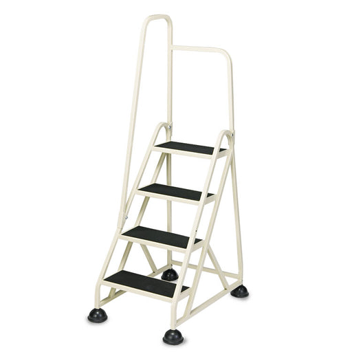 Ideal for warehouses, storerooms and stocking areas. Rolls when pushed and stops when stepped on. Steps have nonslip treads. Scratch-resistant powd...