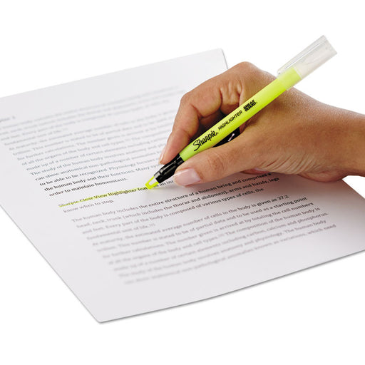 Ergonomic, pen-style highlighter features a unique, see-through tip that eliminates blind spots. SMEAR GUARD™ ink technology resists smearing of ma...