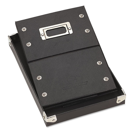 Durable index card file is easy to assemble—just snap together and begin filing. Sturdy black fiberboard with a water-resistant laminate. Steel cor...