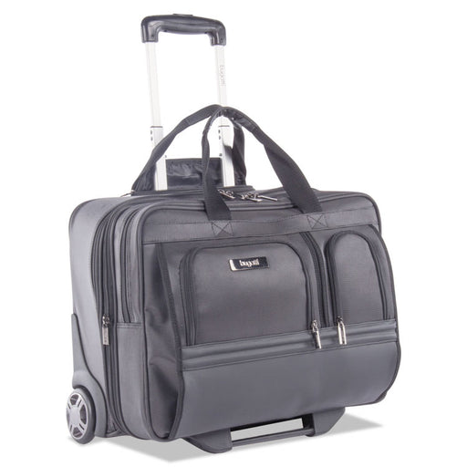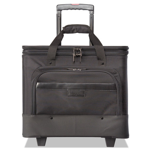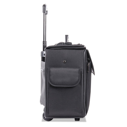 Polyester business case on wheels with retractable telescopic handle and two front organizer pockets. Color(s): Black; Color Family: Black; Materia...