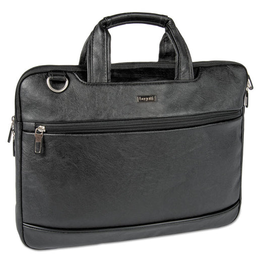 Synthetic 15.6" leather computer briefcase. For Use With: Laptops; Color(s): Black; Color Family: Black; Material(s): Synthetic Leather.