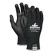 - 13-gauge Kevlar® / Synthetic shell with a black nitrile foam coating on the palm and fingertips.