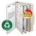 100% Recycled Pressboard Classification Folders, 3 Dividers, Legal Size, Gray-Green, 10/Box