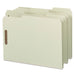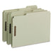 100% Recycled Pressboard Fastener Folders, Letter Size, Gray-Green, 25/Box. Sturdy 25 pt. pressboard folders are great for large, bulky files that get plenty of use. Use for project files, real estate transactions, loans, legal files and more. Tear resistant accordion pleated gussets expand to hold more paperwork. Two embedded fasteners hold up to 2" each. This product was made using wood sourced from a certified managed forest. Folder Size: Letter; Total Number of Fasteners: 2; Max Folder Expansion: 1"; Cover Tab Style: Top Tab.