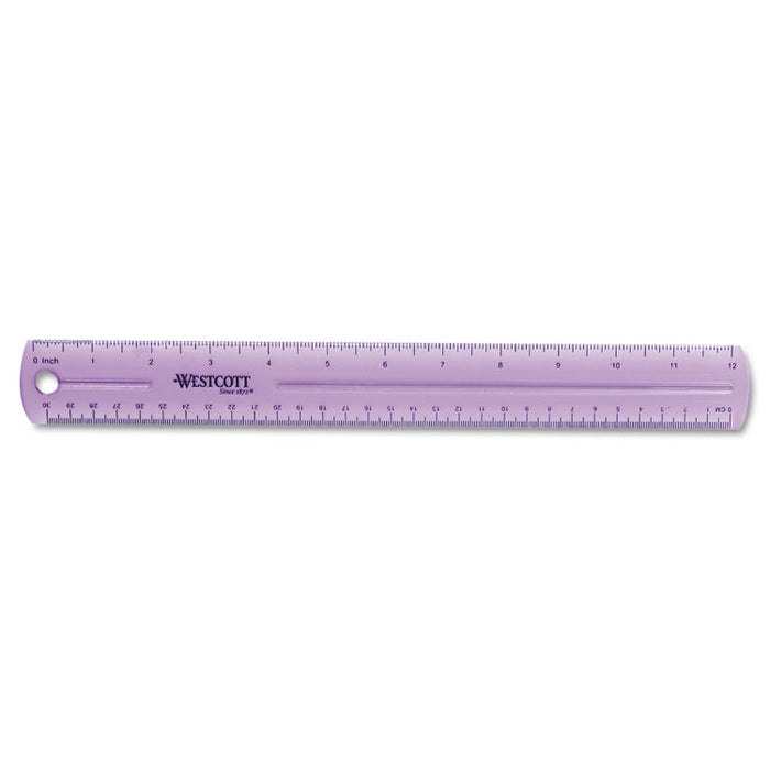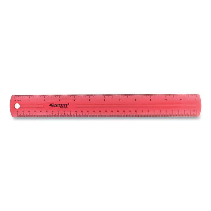 12" Jewel Colored Ruler. Brighten your desktop with assorted transparent jeweltone colors. Hang-up hole. Flexible, durable plastic. Ruler Type: Standard/Metric; Length: 12"; Standard Scale: 1/16"; Metric Scale: Millimeters.