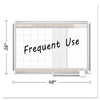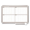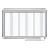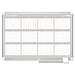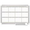 12 Month Planner, 48x36, Aluminum Frame. Organization is vital for the success of every business or enterprise. MasterVision® Planning Boards are excellent tools that allow you to keep scheduling and planning on time. Keeping important dates and tasks on display, organizing work-groups or just planning ahead is practical and easy. Magnetic Gold Ultra™ dry erase board allows you to post notes and messages as well as write. The lacquered steel surface is suitable for frequent use. Sturdy aluminum frame features an adjustable tray and the four-corner system for easy mounting. 12-Month Calendar. Board Type: Magnetic Dry Erase Calendar; Board Width: 48"; Board Height: 36"; Surface Material: Gold Ultra Enameled Steel.
