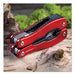 15-in-1 All-Purpose Stainless Steel Tool with Belt Pouch. The Sheffield Camping Series Titus 15-in-1 Multi-Tool features all the necessary multi-tool attachments to help you rest assured. Offering high quality construction, and versatility, the Titus multi-tool has a lightweight aluminum handle and comes with a bonus nylon belt pouch to boot. Includes long nose pliers, standard pliers, wire cutter, serrated blade, saw, phillips screwdriver, awl, hook remover, ruler, fish scaler, file, knife, slotted screwdriver and bottle/can opener. Blades/Tools Featured: Awl; Bottle/Can Opener; File; Fish Scaler; Hook Remover; Knife; Long Nose Pliers; Phillips Screwdriver; Ruler; Saw; Serrated Blade; Slotted Screwdriver; Standard Pliers; Wire Cutters; Material(s): Stainless Steel/Aluminum; Color(s): Red; Width: 1.75".