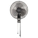 16" Wall Mount Fan, 3-Speed, Metal, Black. This 16" oscillating wall-mount fan is a real problem solver. Easy to assemble and can be quickly installed with the included mounting hardware. Can be controlled by either the rotary knob or the three-way pull cord. Features a sturdy metal frame. Fan Head Size: 16"; Fan Type: Wall; Color(s): Black; Material(s): Metal.