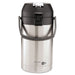 2.5 Liter Lever Action Airpot, Stainless Steel/Black. Conveniently brew directly from brewer. Beverage dispenser features an all-stainless steel construction and lever style pump for easy serving. Seamless stainless steel vacuum liner is durable and ensures beverages remain cold or hot for hours. Lid is designed to swing open fully for brewing directly into airpot funnel for ease of filling and maximum heat retention. Material(s): Stainless Steel/Plastic; Color(s): Stainless Steel/Black; Capacity (Volume): 2.5 Liters (84 oz); Warmer: No.
