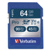64GB Pro 600X SDXC Memory Card, UHS-I V30 U3 Class 10. Capture more than the moment - capture the experience. Verbatim's Pro 600X SDXC UHS-I Class 10 Memory Cards feature UHS-I U3 performance capabilities and a V30 video speed class to let serious enthusiasts record strikingly detailed 4K video, and shoot continuous burst-action photos free of motion blur. Featuring extended capacities, SDXC memory cards let you store more memories, and 90MB/s read speeds erase hitches from playback and enhance the editing experience by cutting down on file transfer times. 600X Transfer Speed. Memory Card Type: SDXC; Storage Capacity: 64 GB; Class Type: UHS-I V30 U3 Class 10.