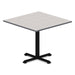 Alera Hospitality Series Single-Column Bases, 28.5"h, 300 lb Cap, Steel, Black. Classic table bases work great to create hospitality, meeting, conference or quick-huddle setups. Reinforced steel base and single column for stability. X-shaped base provides room to pull up chairs/stools and ample leg room. Leveling glides help compensate for uneven floors. Use with Alera® Reversible Laminate Table Tops. Tops and Bases Sold Separately - ORDER BOTH. Standard—Sitting height. Base Color: Black; Overall Width: 27.5"; Overall Depth: 27.5"; Height Maximum: 28.5".