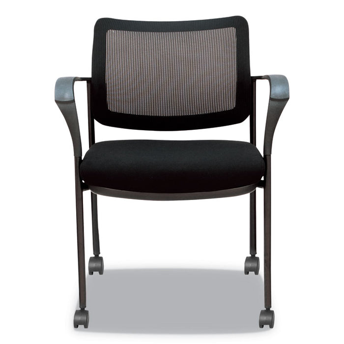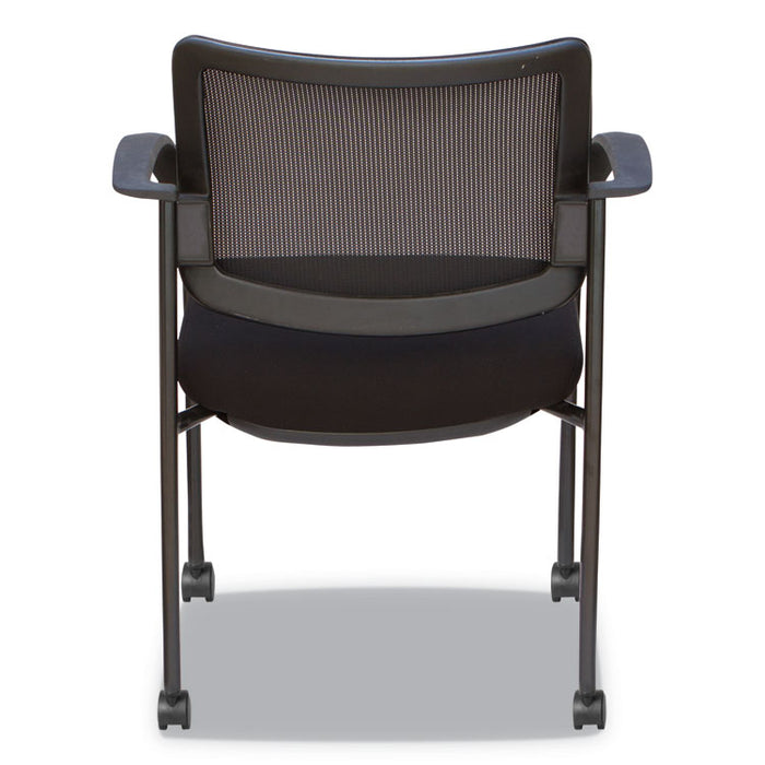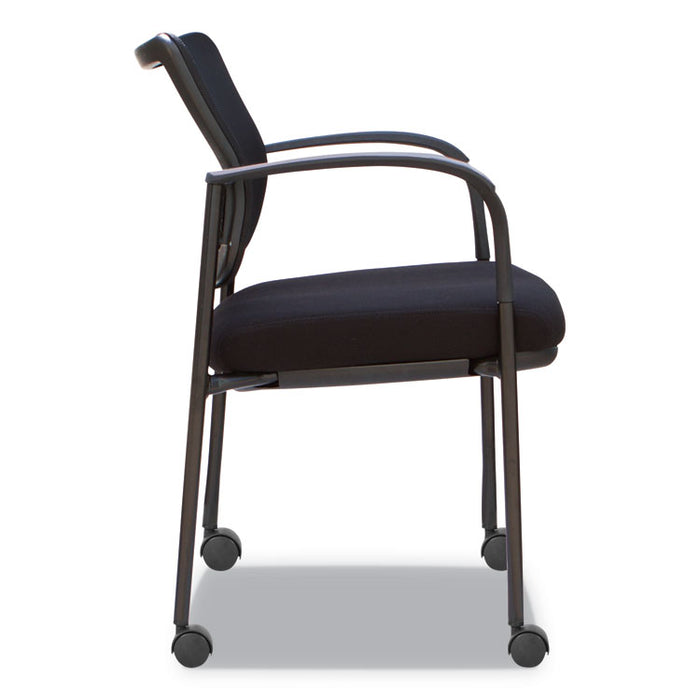 Alera IV Series Guest Chairs, Mesh Back, Fabric Seat, 25.19" x 23.62" x 32.28", Black, 2/Carton. Versatile line of stacking chairs and stools. Perfect for common areas, waiting rooms and guest seating. Contoured back offers built-in lumbar support. Casters and glides included. Mesh Back, Fabric Seat. Recommended Applications: Breakroom & Hospitality; Conference; Drafting; Guest; Lounge; Reception; Training & Meeting; Waiting Room; Warehouse & Industrial-Stools; Seat Color: Black; Back Color: Black; Color Family: Black.