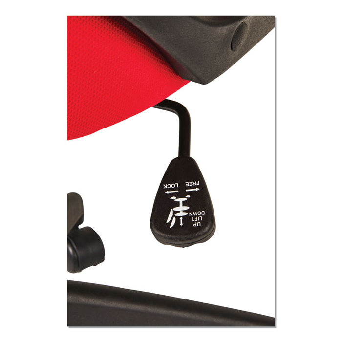 Alera MB Series Mesh Mid-Back Office Chair, Supports up to 275 lbs., Red Seat/Black Back, Black Base. A modern mesh office chair designed for style and comfort. Breathable mesh back for all-day cool comfort. Long-lasting mesh and fabric upholstery withstands constant use. Individually wrapped coil-springs inside a generously cushioned seat provides exception mattress-like comfort all-day long. Subtly arched loop arms provide support while allowing chair to easily fit under your desk. Domed five-star base with casters for easy mobility. Recommended Applications: Conference, Training & Meeting; Executive & Management; General Office & Task; Seat Color: Red; Back Color: Black; Color Family: Red.