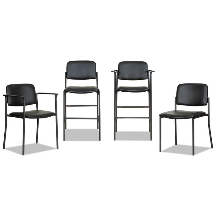 Alera Sorrento Series Stool, Supports up to 300 lbs., Black Seat/Black Back, Black Base, 2/Carton. Cushioned seat and base for comfort. Black steel base with straight legs. Faux leather upholstery. Perfect for hospitality areas including waiting rooms, counters, or conference rooms. Steel construction for strength and durability. Recommended Applications: Breakroom & Hospitality; Specialty Big & Tall, 24/7; Seat Color: Black; Back Color: Black; Color Family: Black.