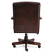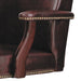 Alera Traditional Series High-Back Chair, Supports 275 lb, 18.7" to 22.63" Seat, Oxblood Burgundy Seat/Back, Mahogany Base. Traditional styling with brass nailheads. High-back swivel/tilt chair. Integrated bolstered headrest for enhanced comfort and style. Hardwood frame with a rich mahogany finish. Padded arms for comfort and support. Steel reinforced wood five-star base with casters for easy mobility. Recommended Applications: Executive & Management; Seat Color: Oxblood Burgundy; Back Color: Oxblood Burgundy; Color Family: Red.