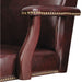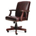 Alera Traditional Series Mid-Back Chair, Supports up to 275 lbs., Oxblood Burgundy Seat/Oxblood Burgundy Back, Mahogany Base. Traditional styling with brass nailheads. Mid-back swivel/tilt chair. Hardwood frame with a rich mahogany finish. Padded arms for comfort and support. Steel reinforced wood five-star base with casters for easy mobility. Recommended Applications: Executive & Management; Seat Color: Oxblood Burgundy; Back Color: Oxblood Burgundy; Color Family: Red.