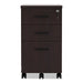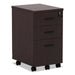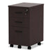 Alera Valencia Series Mobile Pedestal File, Left/Right, 3-Drawers: Box/Box/File, Legal/Letter, Mahogany, 15.88 x 20.5 x 28.38. Mobile to go anywhere you need it to go. Full-extension ball bearing slides on file drawer for easy access. Drawers lock for securing contents. Durable 3mm edge banding protects against bumps and dings. Five casters, two locking. Center caster prevents tipping. Fully assembled, just attach casters. Keys (included) fold-away 90° for slimmer profile. Box/Box/File. Color: Mahogany; Color Family: Mahogany; Overall Width: 15.88"; Overall Depth: 20.5".