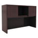 Alera Valencia Series Hutch with Doors, 47.13w x 15d x 35.38h, Mahogany. Increase productivity and desktop space with this hutch. Handy compartmentalized overhead storage. Lighting valance and grommets to facilitate task lighting installation. Durable woodgrain laminate is water-, scratch- and stain-resistant. Fully finished back. Color: Mahogany; Color Family: Mahogany; Overall Width: 47.13"; Overall Depth: 15".
