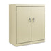 Assembled 42" High Heavy-Duty Welded Storage Cabinet, Two Adjustable Shelves, 36w x 18d, Putty. Assembled storage cabinet with three-point locking bar system locks top, bottom and doors. Doors open 180° for easy access to contents. Cabinet made of industrial grade steel with satin chrome double handles. 42" High Cabinet—Two adjustable shelves. Color: Putty; Overall Width: 36"; Overall Depth: 18"; Overall Height: 42".