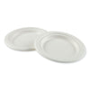 Bagasse Dinnerware, Plate, 9" dia, White, 500/CartonSturdy molded fiber products are compostable, suitable for hot or cold food items.