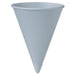 Bare Treated Paper Cone Water Cups, 6 oz, White, 200/Sleeve, 25 Sleeves/Carton. Extra-strong treated paper minimizes the potential for messy leaks. Traditional conical shape, as it makes set-and-forget placement impossible, helps reduce common-area litter. Cups fit all standard water-cooler cup dispensers. Cup Type: Cold; Capacity (Volume): 6 oz; Material(s): Paper; Color(s): White.