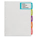 Big Tab Printable Large White Label Tab Dividers, 5-Tab, Letter, 20 per pack. Large labels extend from the tabs onto each divider body—more room to fit content, logos or graphics on your tab labels. Easy Peel® labels with the Pop-up Edge® for fast, easy tab labeling—no inserts needed. Arched shaped tabs and labels give a contemporary look. Print in black and white or create a custom color set with print-to-the-edge labels. Easy to customize with free templates and designs using Avery Design & Print. Bonus standard label sheet included for labeling back of tabs—allows for quick referencing. For laser and inkjet printers. Index Divider Style: Customizable; Index Divider Size: 11 x 8.5; Punched/Unpunched: 3-Hole Punched; For Use With: Ring Binders.