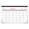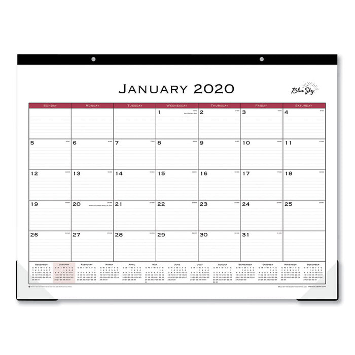 Classic Red Desk Pad, 22 x 17, 2020. Stylish monthly write-on calendar is perfect for wall or desktop and range 12 months from January to December. One page per month format includes ruled daily blocks, Sunday through Saturday scheduling, count of days/days remaining, holidays and past and future calendar reference blocks. Slim desk pad calendar is printed with soy based ink on thick, premium quality, acid free pages that reduce ink bleed-through. Clear corners keep pages flat. Easy-to-tear perforated monthly pages. Size: 22 x 17; Page Color/Theme: Classic Red; Appointment Ruling: None; Edition Year: 2020.