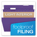 Colored Hanging Folders, Letter Size, 1/5-Cut Tab, Violet, 25/Box. Put color to work in your filing system. Vividly colored folders are indispensable for all of your office and home filing needs. Two-tone design, with a Kraft interior, helps prevent misfiling. Includes clear tabs and blank white inserts (unless otherwise noted). Folder Size Type: Letter; Folder Color: Violet; Color Family: Purple; Folder Material: 11-pt Stock.