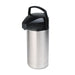 Commercial Grade Jumbo Airpot, 3.5 L Capacity, Stainless Steel/Black. Superior vacuum insulation keeps beverages hot or cold for 12-plus hours. Drinks dispensed by push-button pump top with lock and spigot. Detachable lid assembly for easy filling and cleaning. Unbreakable vacuum stainless steel liner. Black-hinged handle and lid. Material(s): Stainless Steel; Color(s): Stainless Steel/Black; Capacity (Volume): 3.5 Liters.