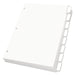 Custom Label Tab Dividers with Self-Adhesive Tab Labels, 8-Tab, 11 x 8.5, White, 5 Sets. Removable, self-adhesive labels for creating and changing tabs quickly and easily. Simply print, peel and paste your custom label onto the tab. Three-hole punched for use in standard ring binders. Laser and inkjet printer compatible. Free templates available. Index Divider Style: Customizable; Index Divider Size: 11 x 8.5; Punched/Unpunched: 3-Hole Punched; For Use With: Ring Binders.
