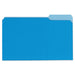 Deluxe Colored Top Tab File Folders, 1/3-Cut Tabs, Legal Size, Blue/Light Blue, 100/Box. Bright color—great for color-coding and preventing misfiles. Constructed of high-quality 11 pt. stock to resist tearing. Bottom is triple-scored for 3/4", no-sag expansion. Undercut at tabs. File Folder Size Type: Legal; File Folder Color: Blue/Light Blue; Color Family: Blue; File Folder Material: 11-pt Stock.