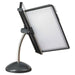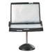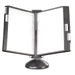 Desktop Reference System, 10 Pockets. Features a sleek and functional design. Easily change viewing angle or rotate it to fit your needs. Easily adjusts from portrait to landscape format to handle all types of documents. Compact weighted base means more available desk space. Includes ten clear pockets with black frames and index tabs. Width: 18.25"; Depth: 14.5"; Height: 20.25"; Material(s): Polypropylene pockets, Steel.