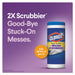 Disinfecting Wipes with Micro-Scrubbers, Crisp Lemon, 7 x 8, 70/Canister, 6/CT. Clorox Disinfecting Wipes with Micro-Scrubbers clean and disinfect in one easy step. These sanitizing wipes are textured to power through tough messes and kill 99.9% of bacteria and viruses including cold and flu viruses, Staph, Salmonella, Strep, Kleb and E. coli in as little as 30 seconds. The double-sided texture with micro-scrubbers makes these cleaning wipes suitable and safe to use on an array of surfaces including finished hardwood and granite. The texture side is great for scouring tough baked on grime and soap scum and the smooth side is useful for wiping away dirt. The clear drying formula in these cleaning wipes works great on a variety of shiny surfaces like stainless steel, mirrors and glass. Ideal for offices, day care centers, schools, hotels, restaurants and other commercial facilities. Clorox Disinfecting Wipes with Micro-Scrubbers help keep homes and businesses clean and healthy. Towel/Wipe Type: Disinfecting Wipes; Application: Bathrooms; Gyms; Hospitals; Kitchens; Offices; Schools; Day Care Centers; Applicable Material: Acrylic; Ceramic; Chrome; Fiberglass; Glass; Metal; Plastic; Tile; Vinyl; Wood; Material(s): Non-Woven Fiber.