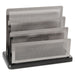 Distinctions Mini Sorter, 3 Sections, DL to A5 Size Files, 7.5" x 3.5" x 5.75", Black/Silver. Keep documents, mail, paperwork, stationery, and more organized and easy to access with the Rolodex Distinctions Three-Compartment Sorter. With three sections for convenient arranging and graduated punched-metal sorting vanes that increase visibility, this sorter adds stylish organization to any workspace. Number of Compartments: 3; For File Size: DL to A5; Load Orientation: Top/Side; Color(s): Black/Silver.